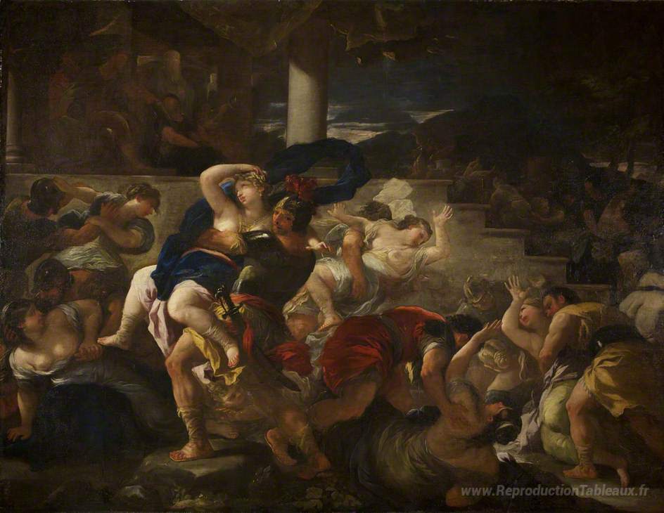 Nous vous proposons une reproduction artisanale sur toile du célèbre tableau 'Le viol des femmes Sabine' de Luca Giordano, provenant du Musée de la Reproduction.