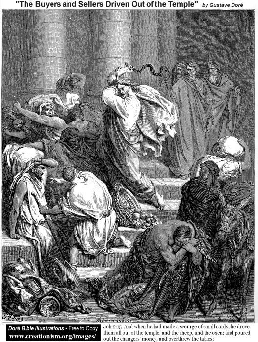 Nous vous proposons une reproduction artisanale sur toile du célèbre tableau 'Les acheteurs et les vendeurs chassés du temple' de Gustave Dore, provenant du Musée de la Reproduction.