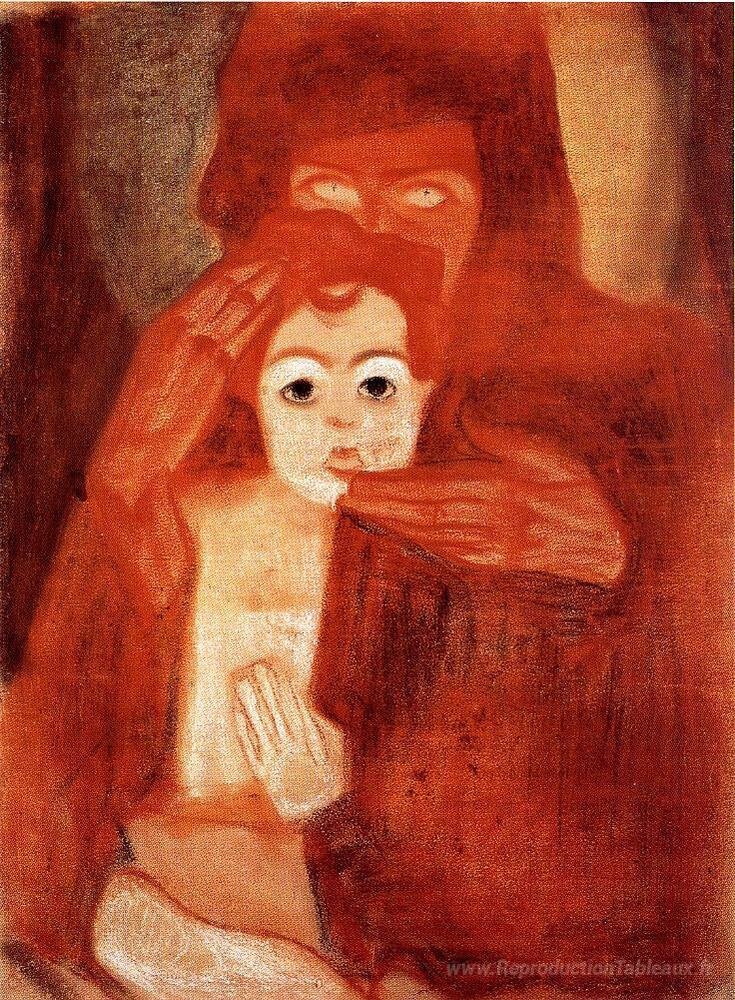 Nous vous proposons une reproduction artisanale sur toile du célèbre tableau 'Mère et enfant (Madonna)' de Egon Schiele, provenant du Musée de la Reproduction.