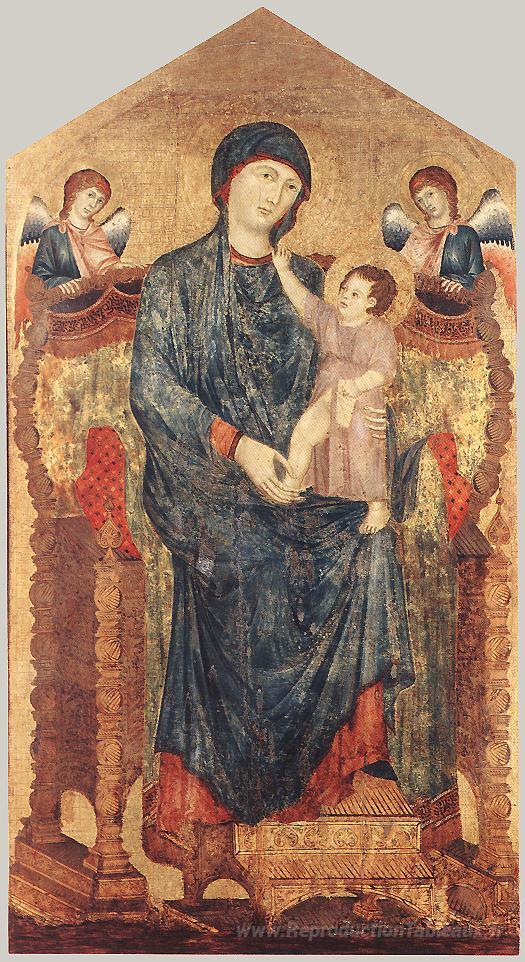 Nous vous proposons une reproduction artisanale sur toile du célèbre tableau 'Maestà' de Duccio, provenant du Musée de la Reproduction.