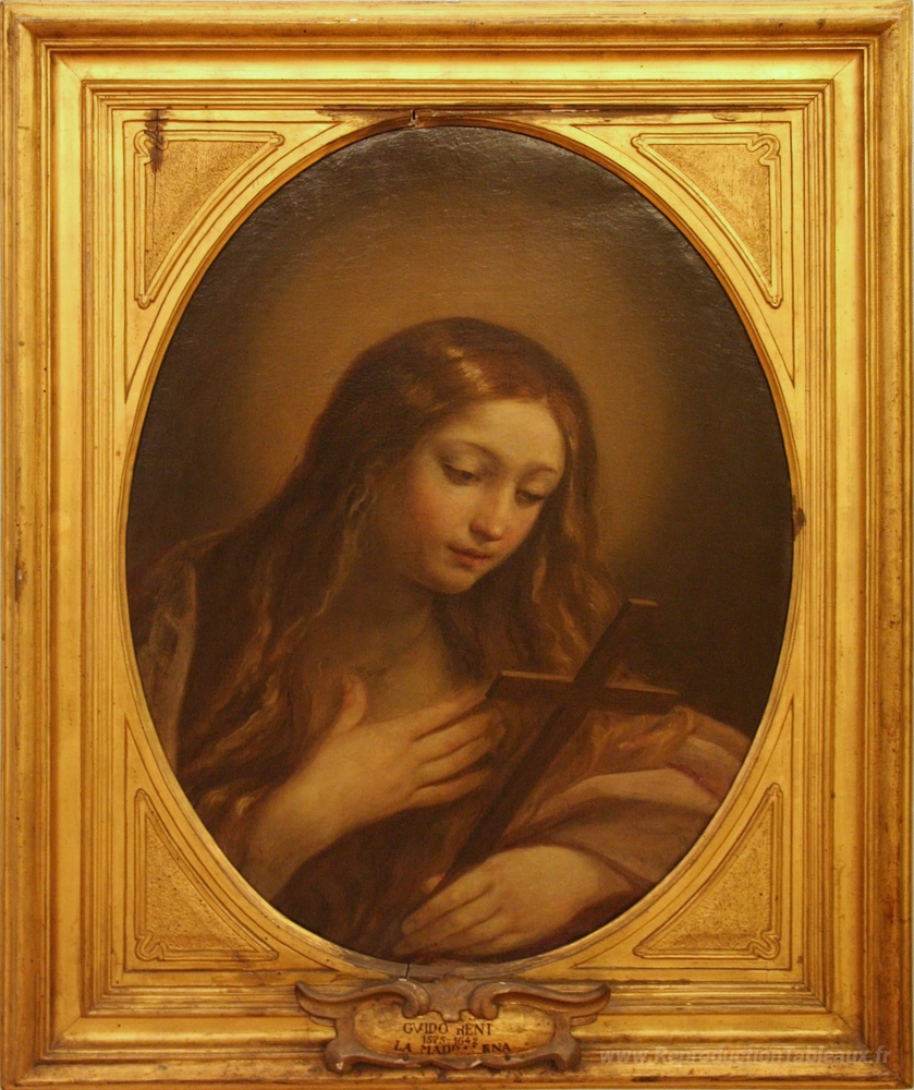 Nous vous proposons une reproduction artisanale sur toile du célèbre tableau 'Magdalene pénitent' de Guido Reni, provenant du Musée de la Reproduction.