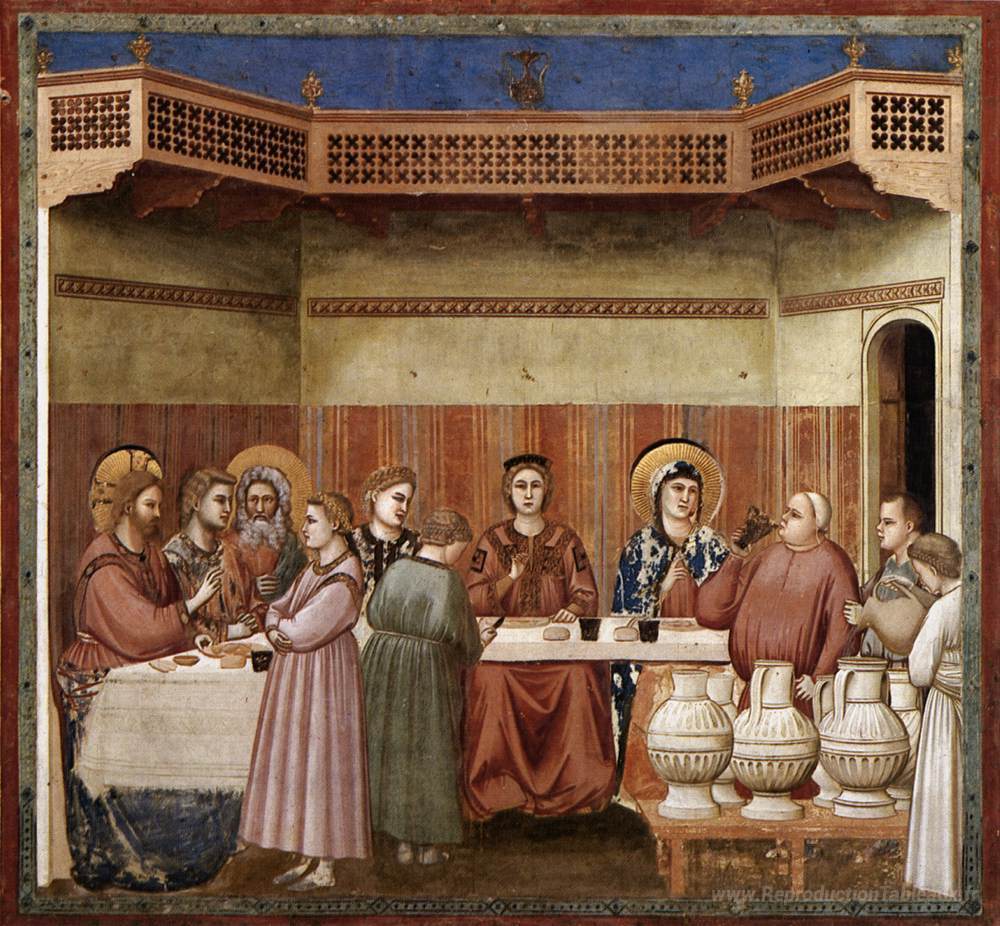 Nous vous proposons une reproduction artisanale sur toile du célèbre tableau 'Mariage à Cana' de Giotto, provenant du Musée de la Reproduction.