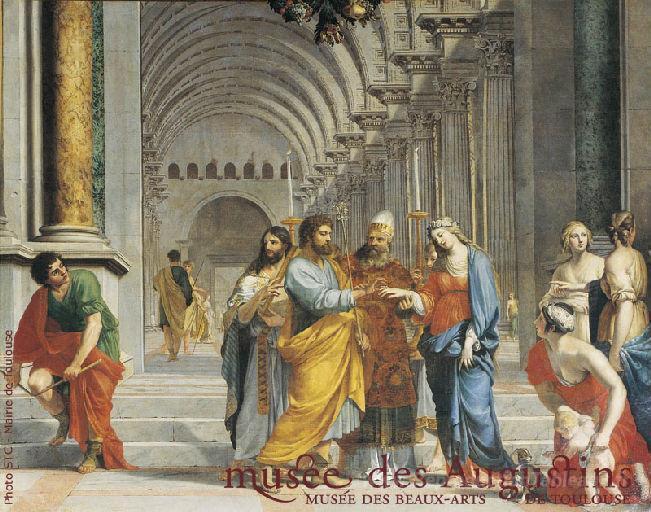 Nous vous proposons une reproduction artisanale sur toile du célèbre tableau 'Mariage de la Vierge' de Jacques Stella, provenant du Musée de la Reproduction.