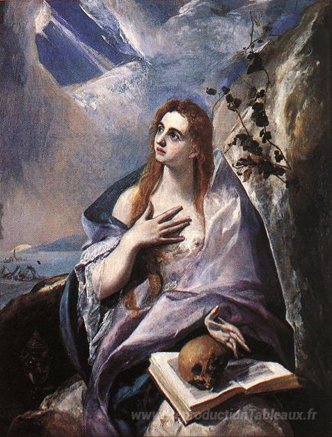 Nous vous proposons une reproduction artisanale sur toile du célèbre tableau 'Marie-Madeleine dans la pénitence' de El Greco, provenant du Musée de la Reproduction.