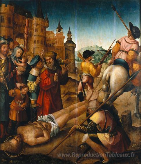 Nous vous proposons une reproduction artisanale sur toile du célèbre tableau 'Martirio de Santo Hipólito' de Cristovao de Figueiredo, provenant du Musée de la Reproduction.