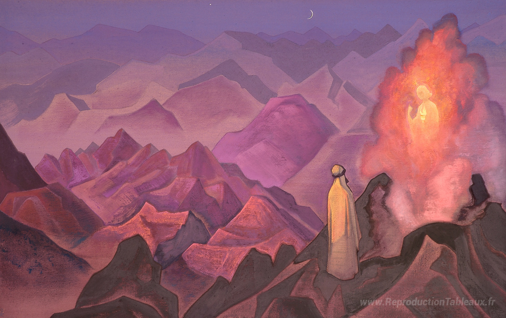 Nous vous proposons une reproduction artisanale sur toile du célèbre tableau 'Mohammed le prophète' de Nicholas Roerich, provenant du Musée de la Reproduction.