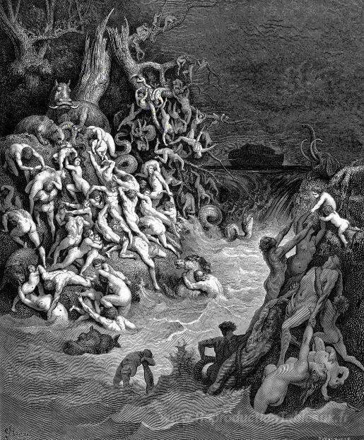 Nous vous proposons une reproduction artisanale sur toile du célèbre tableau 'Monde détruit par l'eau' de Gustave Dore, provenant du Musée de la Reproduction.