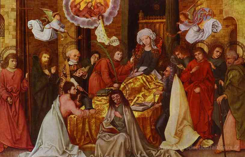 Nous vous proposons une reproduction artisanale sur toile du célèbre tableau 'Mort de la vierge' de Hans Holbein the Younger, provenant du Musée de la Reproduction.
