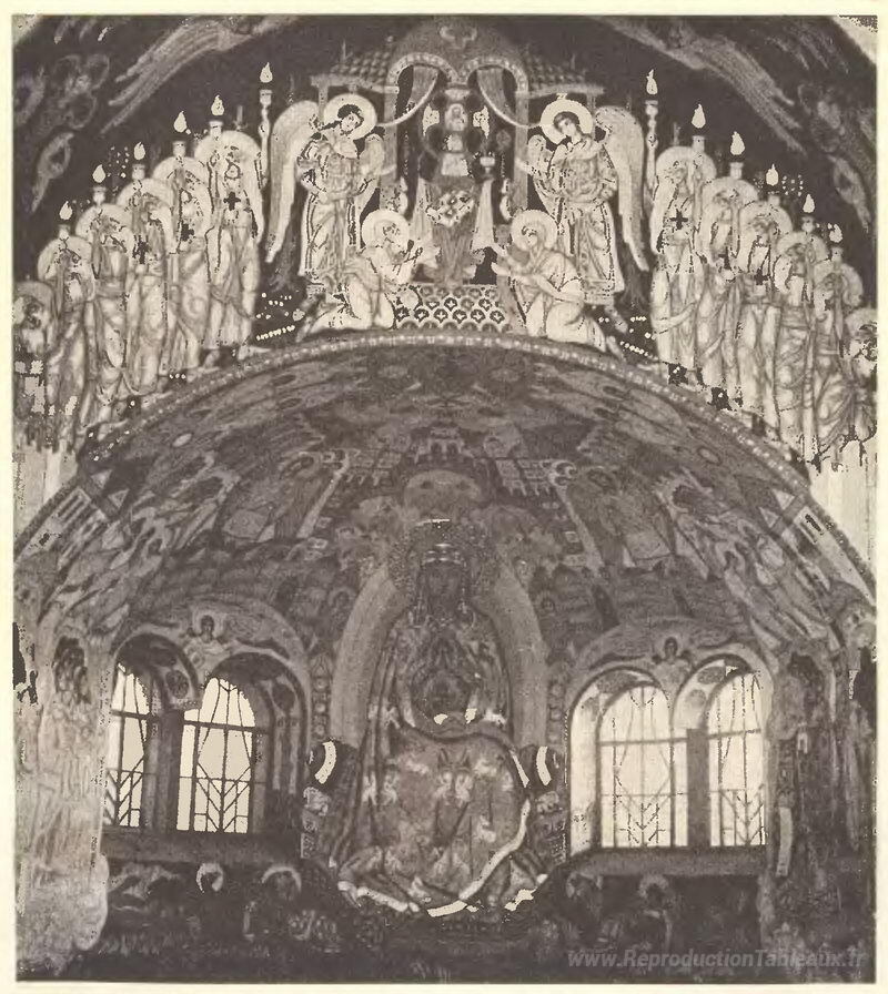 Nous vous proposons une reproduction artisanale sur toile du célèbre tableau 'Peinture interne de l'église à Talashkino' de Nicholas Roerich, provenant du Musée de la Reproduction.