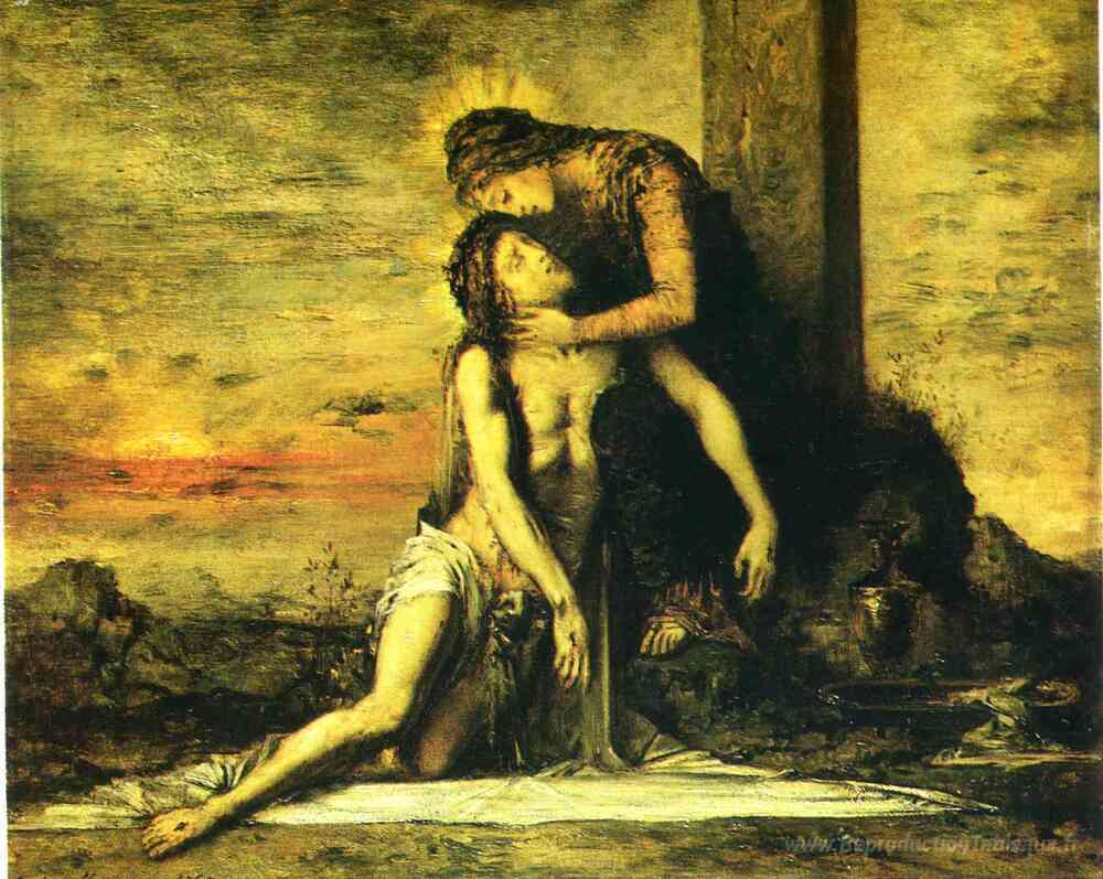 Nous vous proposons une reproduction artisanale sur toile du célèbre tableau 'Pieta' de Gustave Moreau, provenant du Musée de la Reproduction.