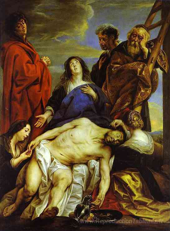 Nous vous proposons une reproduction artisanale sur toile du célèbre tableau 'Pieta' de Jacob Jordaens, provenant du Musée de la Reproduction.