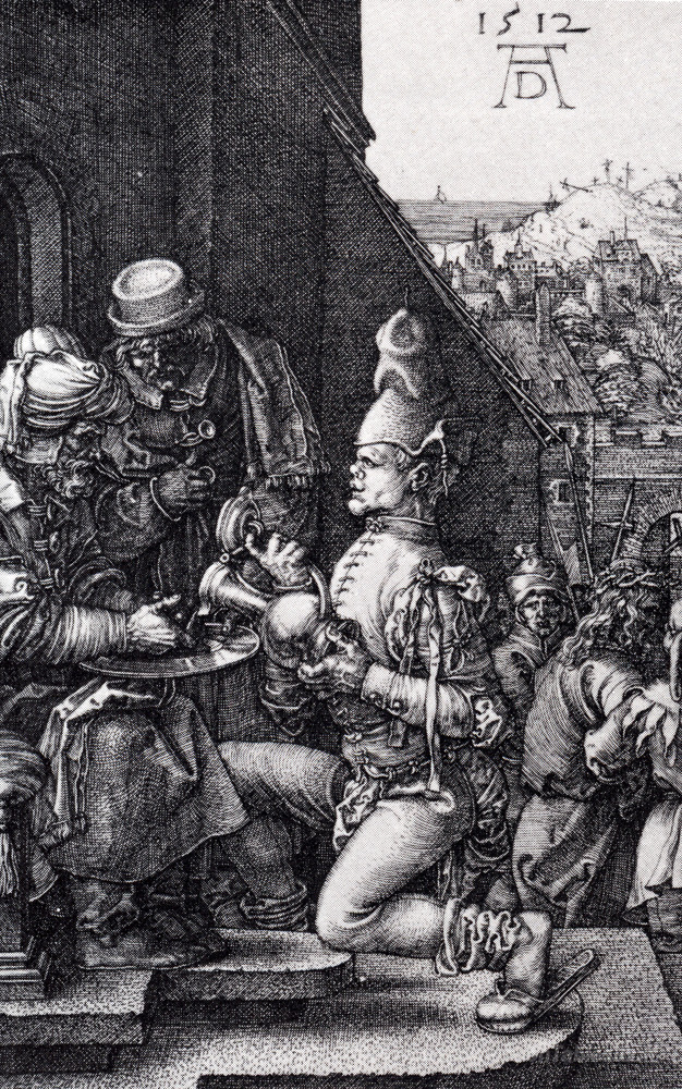 Nous vous proposons une reproduction artisanale sur toile du célèbre tableau 'Pilate se lavant les mains' de Albrecht Durer, provenant du Musée de la Reproduction.