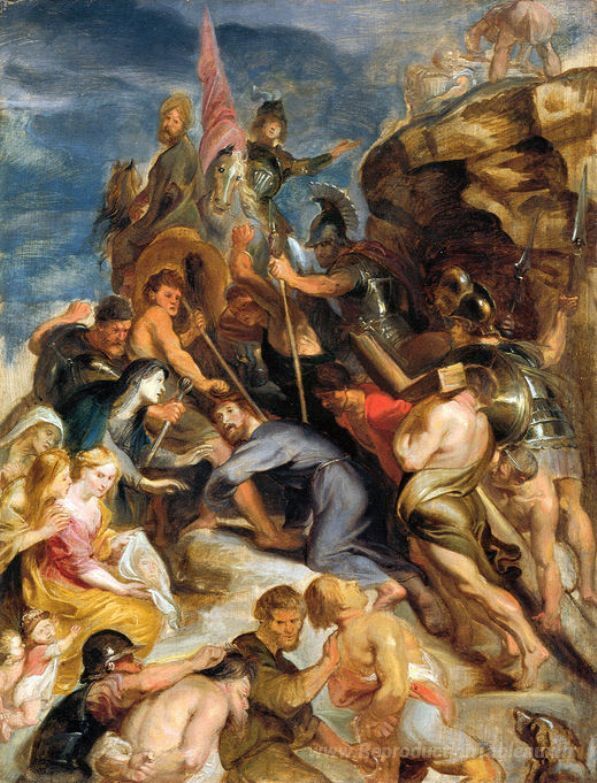 Nous vous proposons une reproduction artisanale sur toile du célèbre tableau 'Portant la croix' de Peter Paul Rubens, provenant du Musée de la Reproduction.