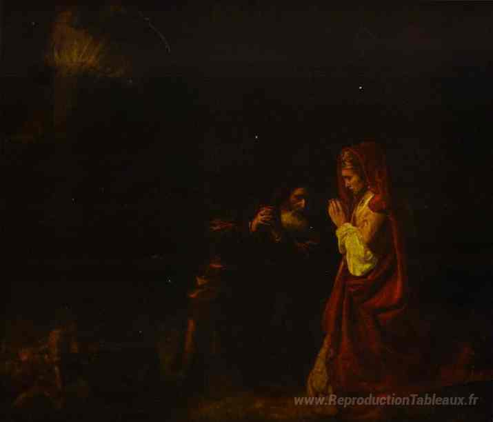 Nous vous proposons une reproduction artisanale sur toile du célèbre tableau 'Sacrifice de manoah' de Rembrandt, provenant du Musée de la Reproduction.