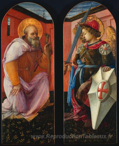 Nous vous proposons une reproduction artisanale sur toile du célèbre tableau 'Saint Anthony et Archange Michael' de Filippo Lippi, provenant du Musée de la Reproduction.