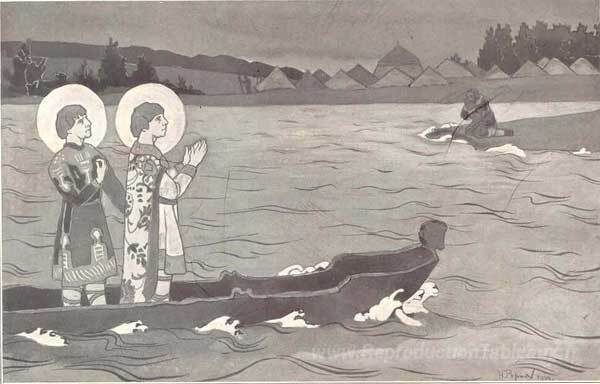 Nous vous proposons une reproduction artisanale sur toile du célèbre tableau 'Saint Boris et Saint Gleb' de Nicholas Roerich, provenant du Musée de la Reproduction.