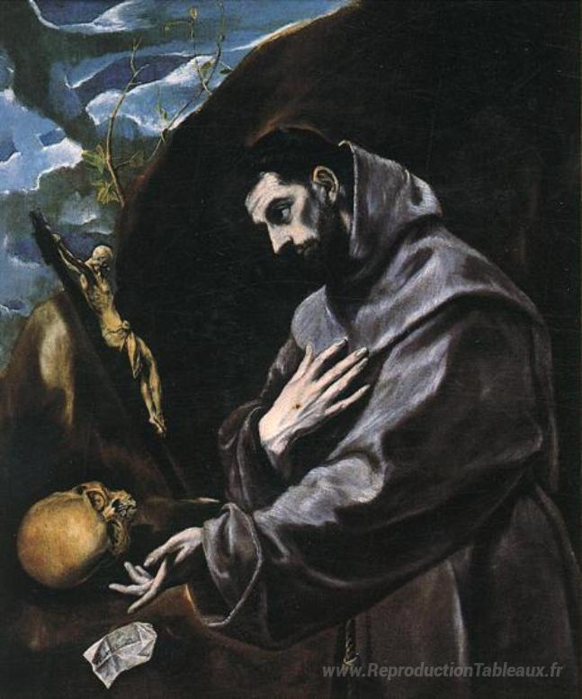Nous vous proposons une reproduction artisanale sur toile du célèbre tableau 'Saint François priant' de El Greco, provenant du Musée de la Reproduction.