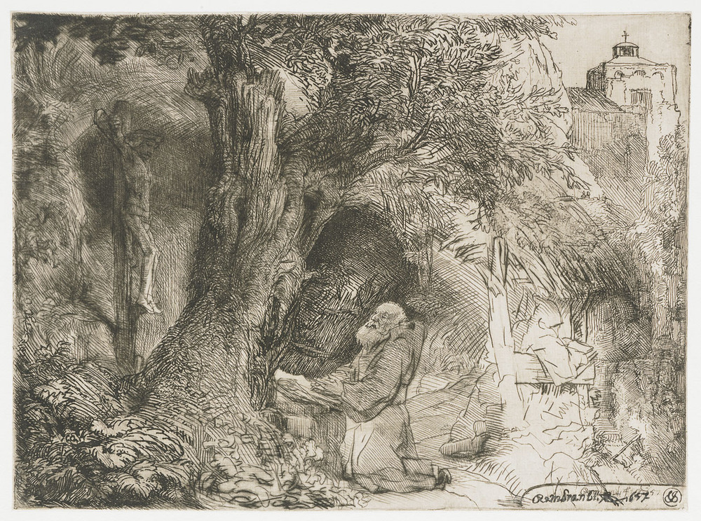 Nous vous proposons une reproduction artisanale sur toile du célèbre tableau 'Saint François sous un arbre priant' de Rembrandt, provenant du Musée de la Reproduction.