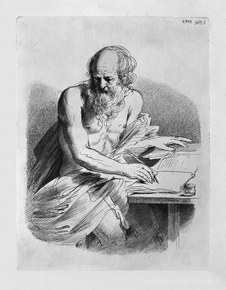 Nous vous proposons une reproduction artisanale sur toile du célèbre tableau 'Saint Jérôme dans l'acte d'écriture, par Guercino' de Giovanni Battista Piranesi, provenant du Musée de la Reproduction.