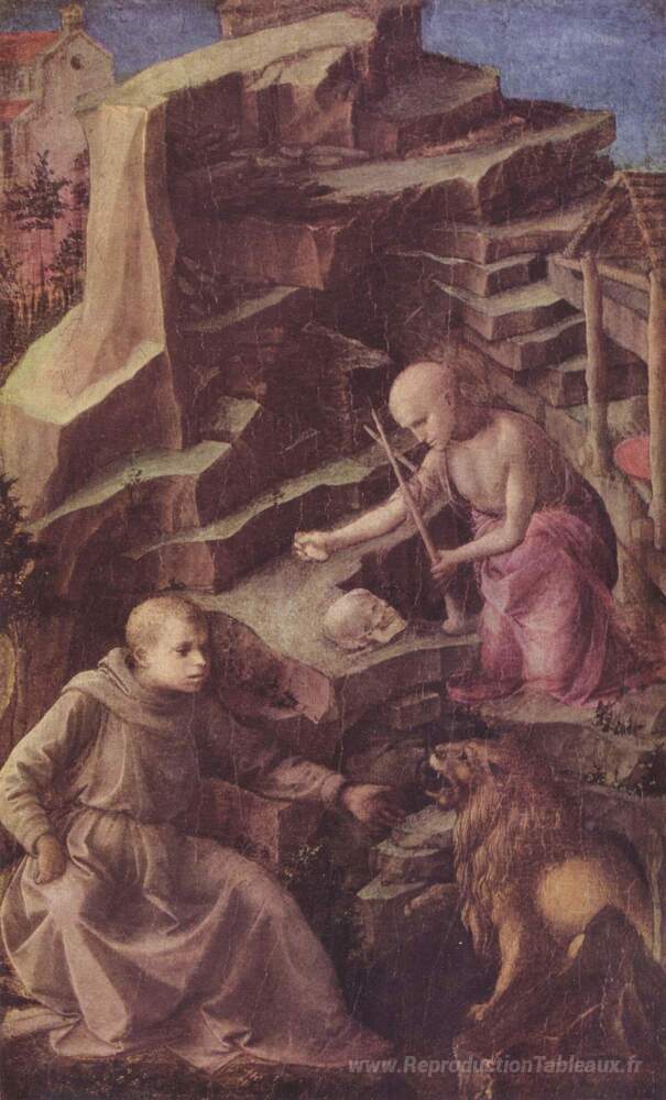 Nous vous proposons une reproduction artisanale sur toile du célèbre tableau 'Saint Jérôme dans le désert' de Filippo Lippi, provenant du Musée de la Reproduction.