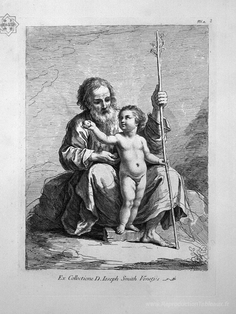 Nous vous proposons une reproduction artisanale sur toile du célèbre tableau 'Saint Joseph, enfant Jésus entre ses genoux, lui tend une pomme' de Giovanni Battista Piranesi, provenant du Musée de la Reproduction.