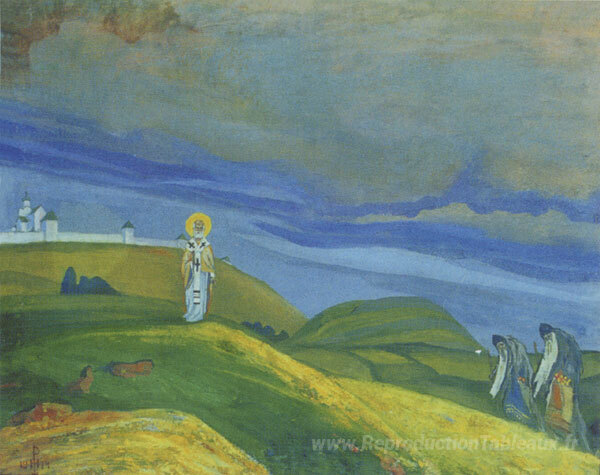 Nous vous proposons une reproduction artisanale sur toile du célèbre tableau 'Saint Nicolas' de Nicholas Roerich, provenant du Musée de la Reproduction.