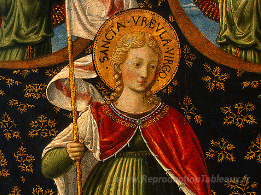 Nous vous proposons une reproduction artisanale sur toile du célèbre tableau 'Saint Ursula avec des anges et un donneur (détail)' de Benozzo Gozzoli, provenant du Musée de la Reproduction.