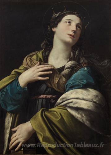 Nous vous proposons une reproduction artisanale sur toile du célèbre tableau 'Saint-Catherine' de Guido Reni, provenant du Musée de la Reproduction.
