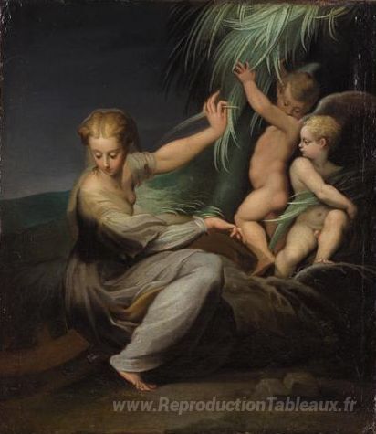 Nous vous proposons une reproduction artisanale sur toile du célèbre tableau 'Saint-Catherine' de Parmigianino, provenant du Musée de la Reproduction.