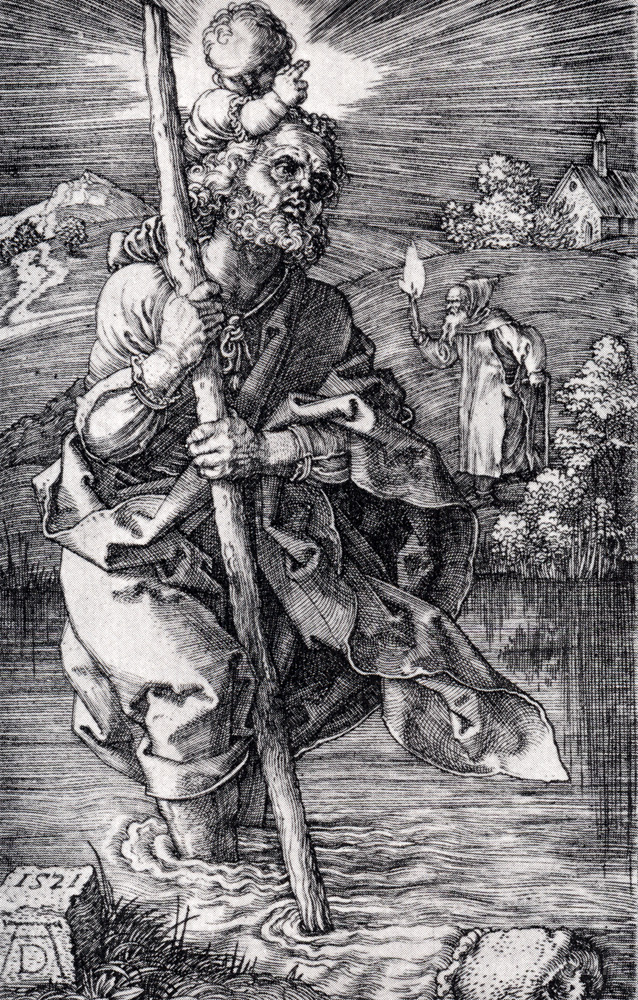 Nous vous proposons une reproduction artisanale sur toile du célèbre tableau 'Saint-Christopher face à droite' de Albrecht Durer, provenant du Musée de la Reproduction.