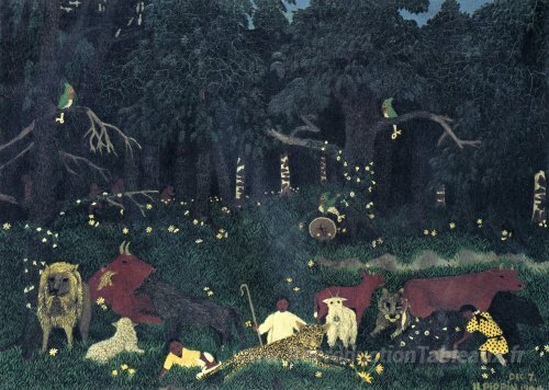 Nous vous proposons une reproduction artisanale sur toile du célèbre tableau 'Sainte Montagne II' de Horace Pippin, provenant du Musée de la Reproduction.