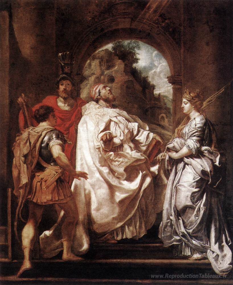 Nous vous proposons une reproduction artisanale sur toile du célèbre tableau 'Saint-Grégoire le grand avec les saints' de Peter Paul Rubens, provenant du Musée de la Reproduction.