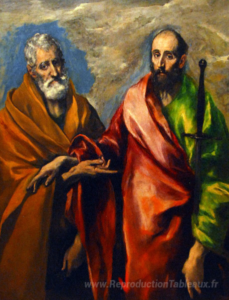 Nous vous proposons une reproduction artisanale sur toile du célèbre tableau 'Saint-Paul et Saint-Pierre' de El Greco, provenant du Musée de la Reproduction.