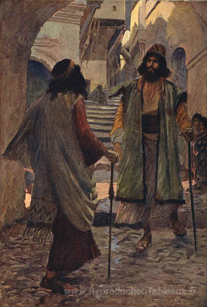 Nous vous proposons une reproduction artisanale sur toile du célèbre tableau 'Saul rencontre Samuel' de James Tissot, provenant du Musée de la Reproduction.