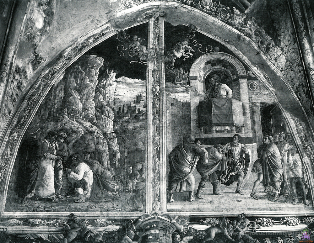 Nous vous proposons une reproduction artisanale sur toile du célèbre tableau 'Scènes de la vie de St.James' de Andrea Mantegna, provenant du Musée de la Reproduction.