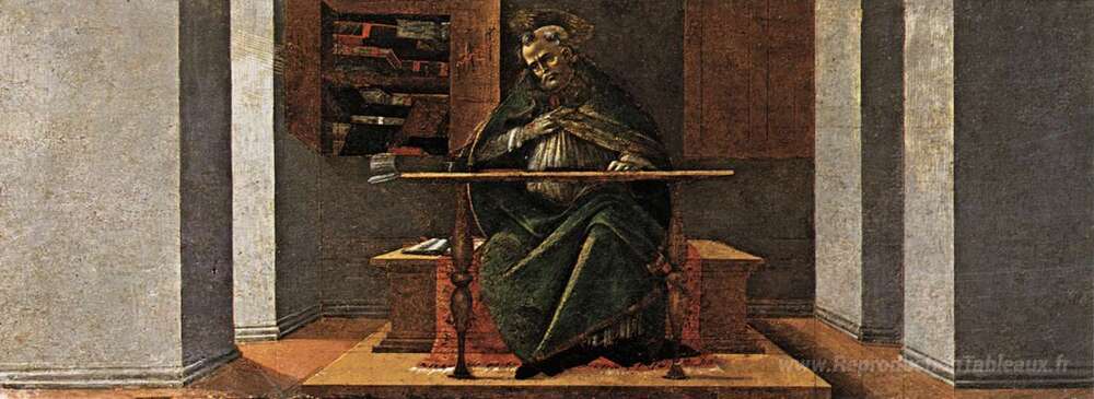 Nous vous proposons une reproduction artisanale sur toile du célèbre tableau 'St Augustine Dans son étude, Predella Panel du retable de St Mar' de Sandro Botticelli, provenant du Musée de la Reproduction.