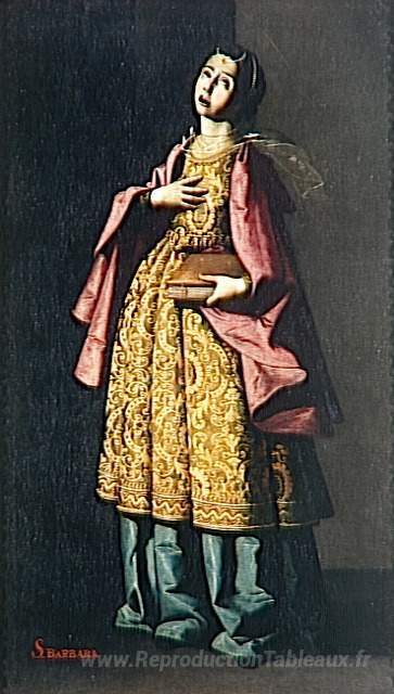 Nous vous proposons une reproduction artisanale sur toile du célèbre tableau 'St. Barbe' de Francisco de Zurbaran, provenant du Musée de la Reproduction.