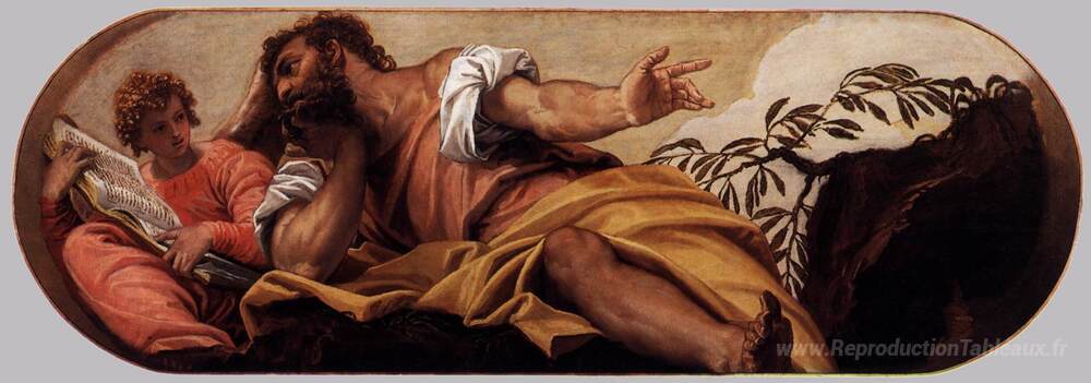 Nous vous proposons une reproduction artisanale sur toile du célèbre tableau 'St Matthieu' de Paolo Veronese, provenant du Musée de la Reproduction.
