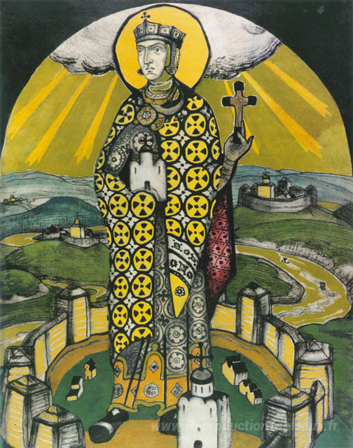 Nous vous proposons une reproduction artisanale sur toile du célèbre tableau 'St.olga de Kiev' de Nicholas Roerich, provenant du Musée de la Reproduction.
