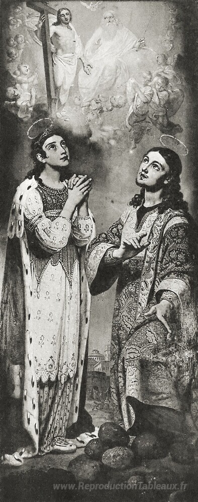 Découvrez l'exquise beauté des peintures à l'huile à travers la reproduction de l'œuvre St. Tsaritsa Alexandra, réalisée par le maître de l'art russe, Vladimir Borovikovsky. Cet artiste, connu pour sa capacité à capturer l'essence de la noblesse et du caractère humain, nous immerge dans un univers où chaque coup de pinceau évoque sophistication et profondeur. Son style, imprégné du romantisme, sublime la réalité tout en offrant un regard intimiste sur son sujet.