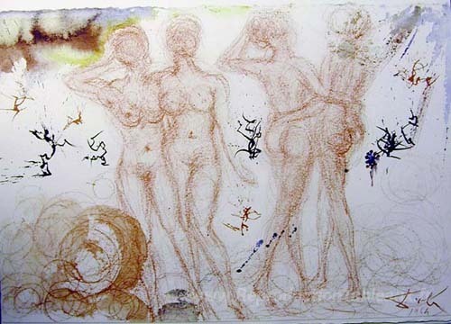 Nous vous proposons une reproduction artisanale sur toile du célèbre tableau 'Stultae et prudentes Filiae (Siracide 07:26)' de Salvador Dali, provenant du Musée de la Reproduction.