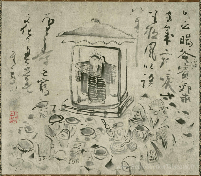 Nous vous proposons une reproduction artisanale sur toile du célèbre tableau 'titre inconnu' de Sengai, provenant du Musée de la Reproduction.