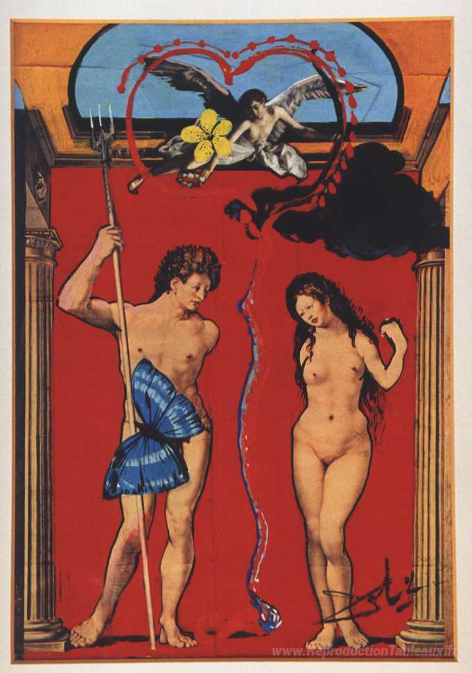 Nous vous proposons une reproduction artisanale sur toile du célèbre tableau 'Triomphe de L'Amour' de Salvador Dali, provenant du Musée de la Reproduction.