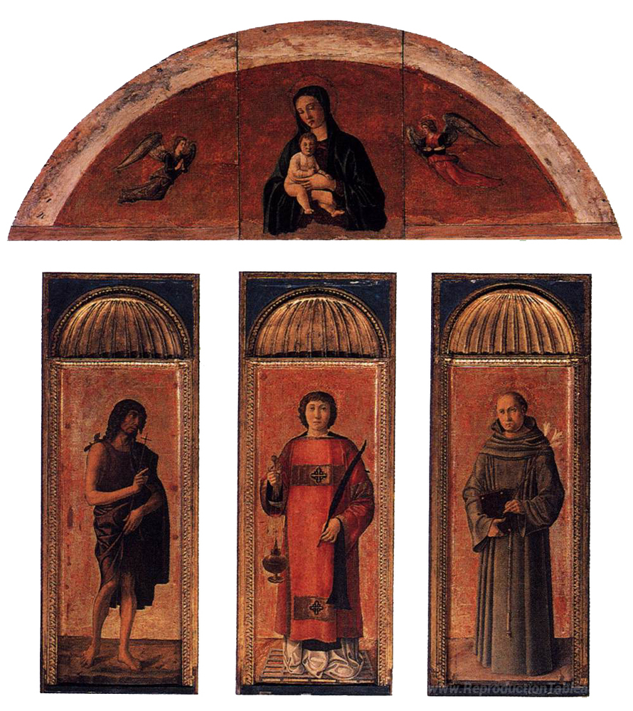 Nous vous proposons une reproduction artisanale sur toile du célèbre tableau 'Triptych de St Lawrence' de Jacopo Bellini, provenant du Musée de la Reproduction.