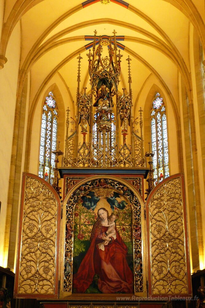 Nous vous proposons une reproduction artisanale sur toile du célèbre tableau 'Vierge dans la brousse, Colmar' de Martin Schongauer, provenant du Musée de la Reproduction.