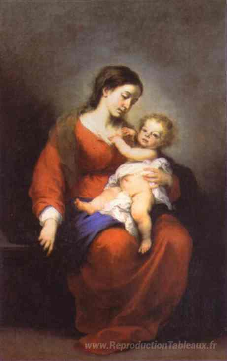 Nous vous proposons une reproduction artisanale sur toile du célèbre tableau 'Vierge et enfant' de Bartolome Esteban Murillo, provenant du Musée de la Reproduction.