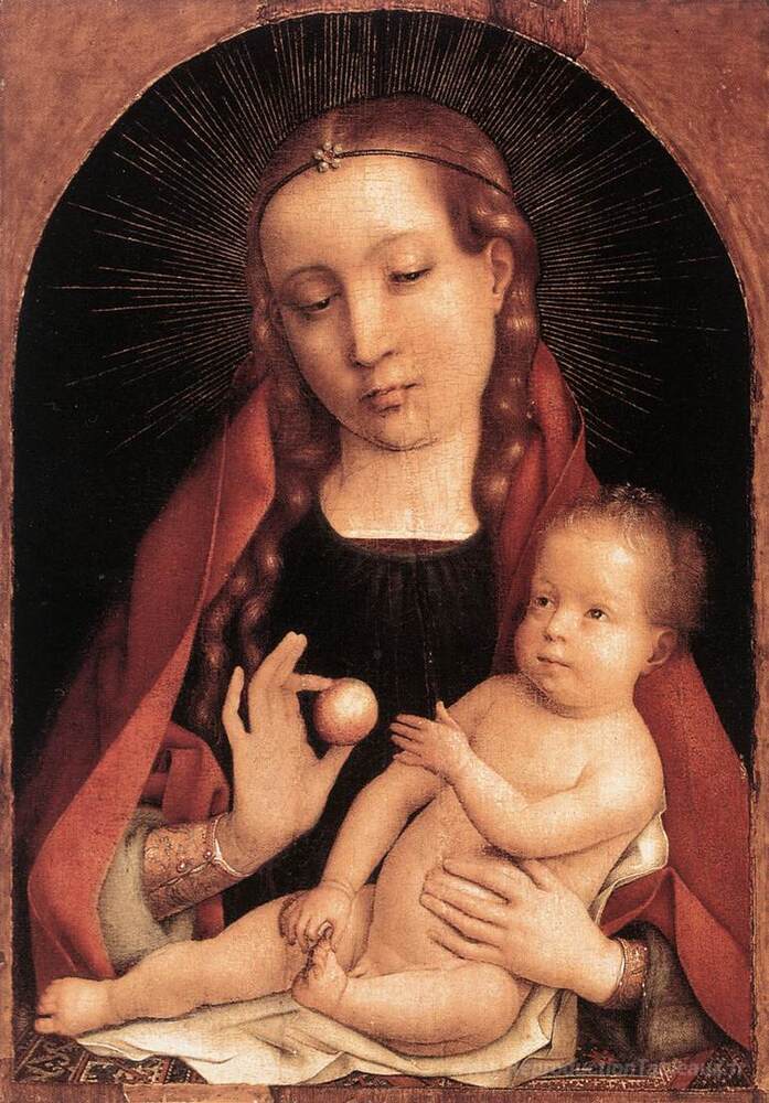 Nous vous proposons une reproduction artisanale sur toile du célèbre tableau 'Vierge et enfant' de Jan Provoost, provenant du Musée de la Reproduction.
