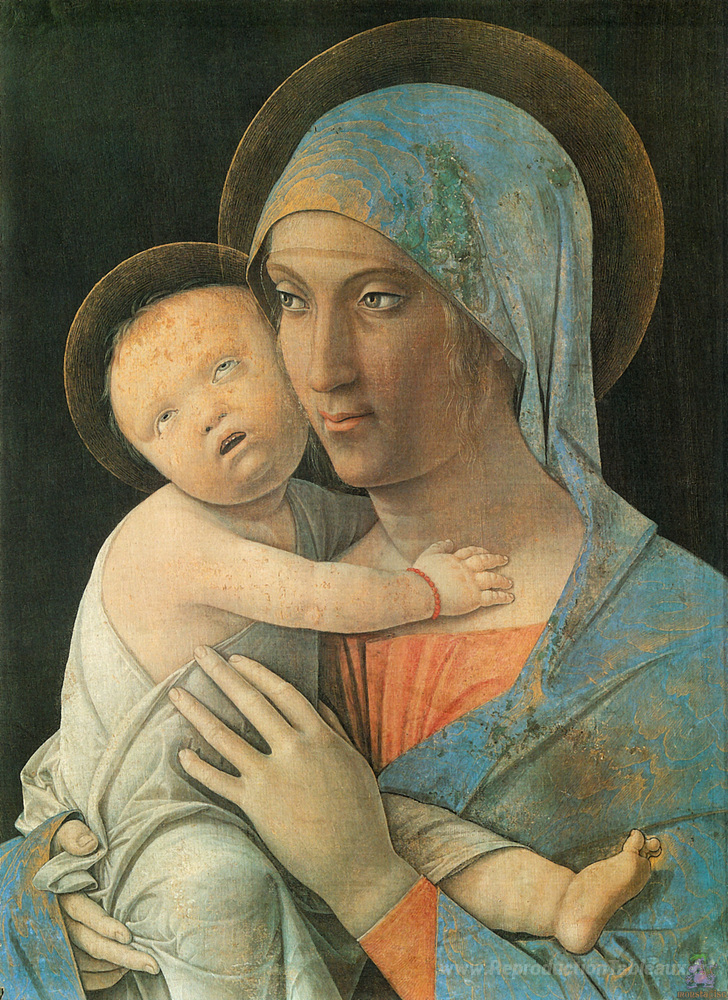 Nous vous proposons une reproduction artisanale sur toile du célèbre tableau 'Vierge et enfant' de Andrea Mantegna, provenant du Musée de la Reproduction.