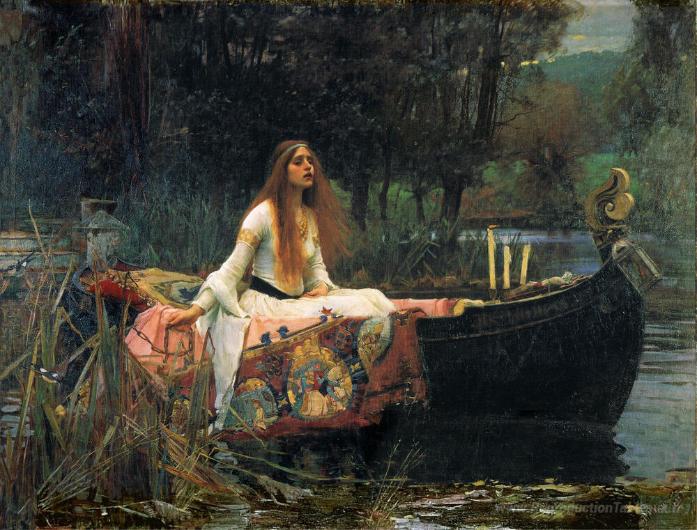 Nous vous proposons une reproduction artisanale sur toile du célèbre tableau 'La dame de Shalott' de John William Waterhouse, provenant du Musée de la Reproduction.