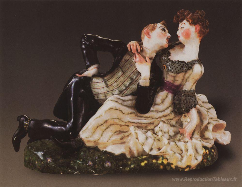 Nous vous proposons une reproduction artisanale sur toile du célèbre tableau 'Amanti 1' de Konstantin Somov, provenant du Musée de la Reproduction.